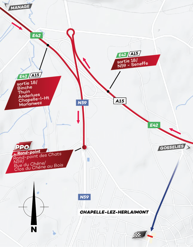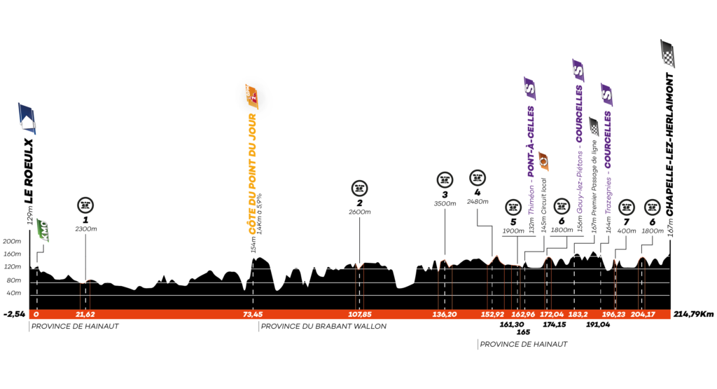 La dernière étape de l’Ethias Tour de Wallonie prend son élan dans une ville bien connue de la course, Le Roeulx, qui rappelle les souvenirs d’un beau départ en 2019. Nous sommes dans le Hainaut. Pour la première fois depuis le début de l’épreuve, les coureurs vont trouver des secteurs pavés sous leurs roues: sept secteurs sont en effet au menu du jour, à Montignies-lez-Lens, à Villers-la-Ville, à Les-Bons-Villers, à Thiméon et à Pont-à-Celles, à passer deux fois dans le circuit local. Le passage par Ronquières -célèbre pour son Plan incliné sur le canal Bruxelles-Charleroi- est synonyme de montée avec la Côte du Point du jour, seule difficulté répertoriée de la journée (km 67). De là, l’Ethias Tour de Wallonie met le cap sur le Brabant wallon sur 70 kilomètres avant de retrouver le Hainaut et de se diriger vers l’arrivée finale à Chapelle-lez-Herlaimont, via le Pays de Charleroi, Pont-à-Celles, Trazegnies, Courcelles, Godarville. »
